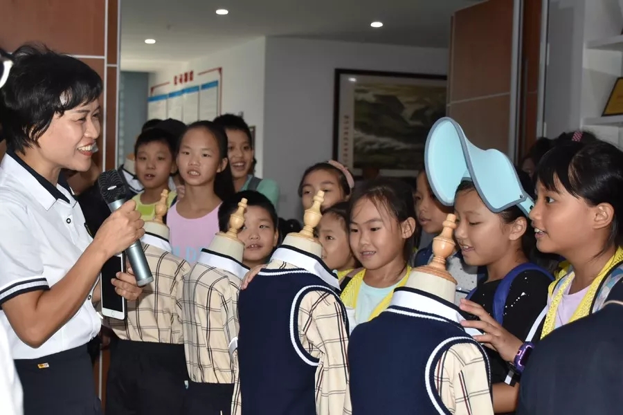 (帶隊(duì)老師為小記者們講解服裝小故事)