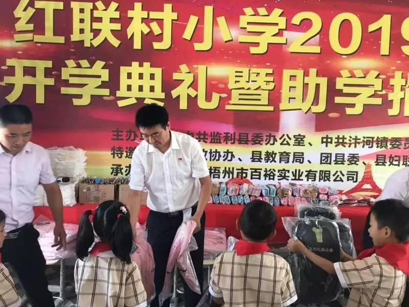 9月4日,監(jiān)利縣縣委辦公室攜手縣教育局,團(tuán)縣委,縣婦聯(lián),縣服裝行業(yè)協(xié)會、百裕集團(tuán)等部門領(lǐng)導(dǎo)、組織及愛心企業(yè)到汴河鎮(zhèn)紅聯(lián)村小學(xué)開展扶貧助學(xué)捐贈活動(dòng),為孩子們送去學(xué)習(xí)生活物資,縣政協(xié)副主席樊明波參加活動(dòng)。