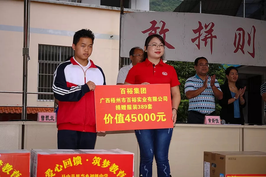 近日,由集團市場總監(jiān)曾凱蘭、河池分公司總經(jīng)理林志煌帶隊的百裕公益小組,分別深入馬山、巴馬地區(qū),為馬山里當初級中學(xué)、巴馬第五幼兒園的學(xué)生們捐贈衣物,表達企業(yè)的關(guān)懷。