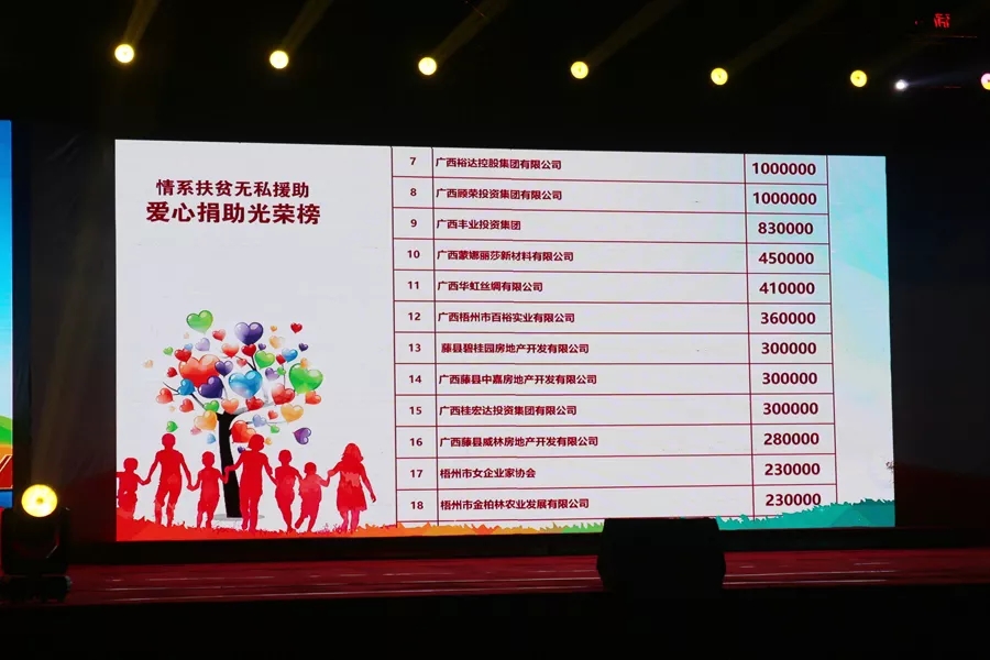 為進一步動員各民營企業(yè)、社會組織、社會各界愛心人士積極參與到扶貧攻堅的壯麗事業(yè)中來,形成“人人皆愿為、人人皆可為、人人皆能為”的社會扶貧參與機制,集中社會各方力量高質(zhì)量打贏打好脫貧攻堅戰(zhàn),在10月17日我國第6個“扶貧日”來臨之際,10月16日晚梧州市2019年國家扶貧日“提高脫貧質(zhì)量 鞏固脫貧成果”主題公益晚會上,百裕集團多年來積極助力脫貧攻堅戰(zhàn)役和社會公益活動工作成績顯著得到表彰。