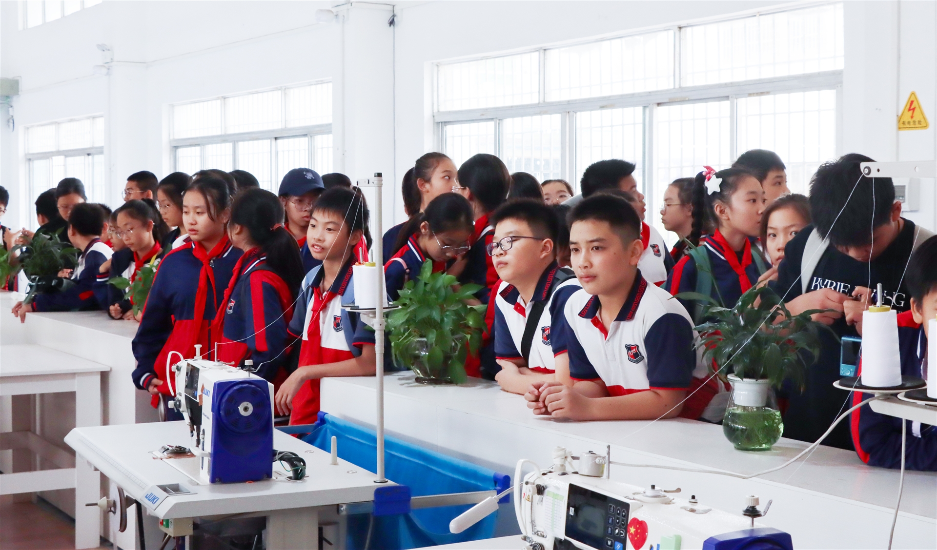 在講解員的引導(dǎo)下,孩子們走進(jìn)校服展示廳,了解校服的產(chǎn)生和歷史變遷,還參觀了解了校服的服飾面料、款式、紋樣以及背后蘊(yùn)藏的服飾文化。通過近距離觀察不同民族的服飾和傳統(tǒng)老式縫紉機(jī)、織布機(jī),他們不僅感受到了校服文化在歷史長河中的變遷及其魅力,也增強(qiáng)了學(xué)生的校服文化自信。
