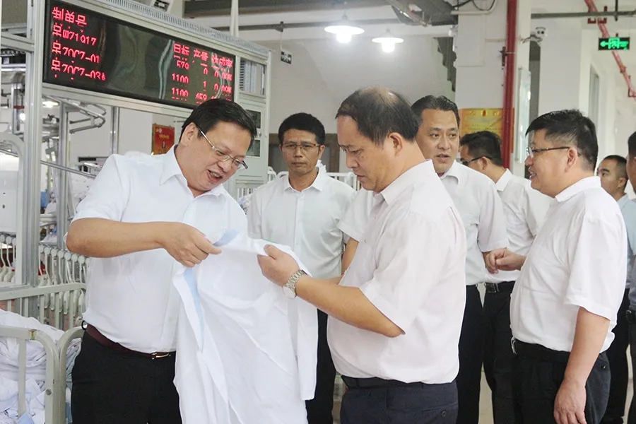 9月8日,梧州市委書記全桂壽,市委常委、秘書長徐文偉,市委副秘書長邱振宇,岑溪市委書記羅偉雄,岑溪市委常委、統(tǒng)戰(zhàn)部部長李勵(lì)興一行蒞臨百裕集團(tuán)岑溪生產(chǎn)中心深入調(diào)研企業(yè)生產(chǎn)經(jīng)營情況。集團(tuán)董事長許曲煌陪同領(lǐng)導(dǎo)們參觀生產(chǎn)中心廠部車間并做了詳細(xì)介紹。