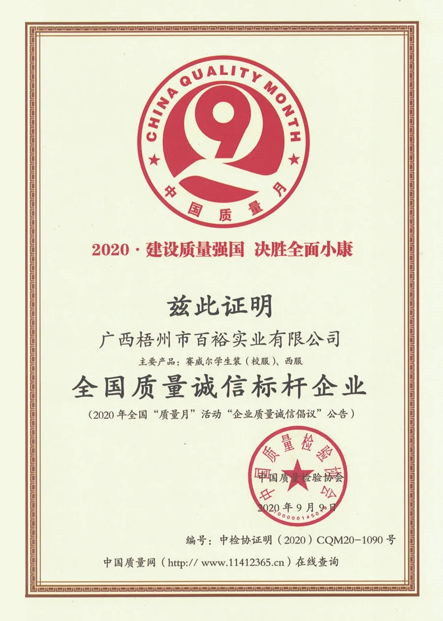 9月9日,百裕集團(tuán)產(chǎn)品憑借卓越的產(chǎn)品質(zhì)量和生產(chǎn)技術(shù),贏得中國質(zhì)量檢驗(yàn)協(xié)會(huì)的認(rèn)可,榮獲“全國百佳質(zhì)量檢驗(yàn)誠信標(biāo)桿企業(yè)”與“全國質(zhì)量誠信標(biāo)桿企業(yè)”榮譽(yù)稱號(hào)。