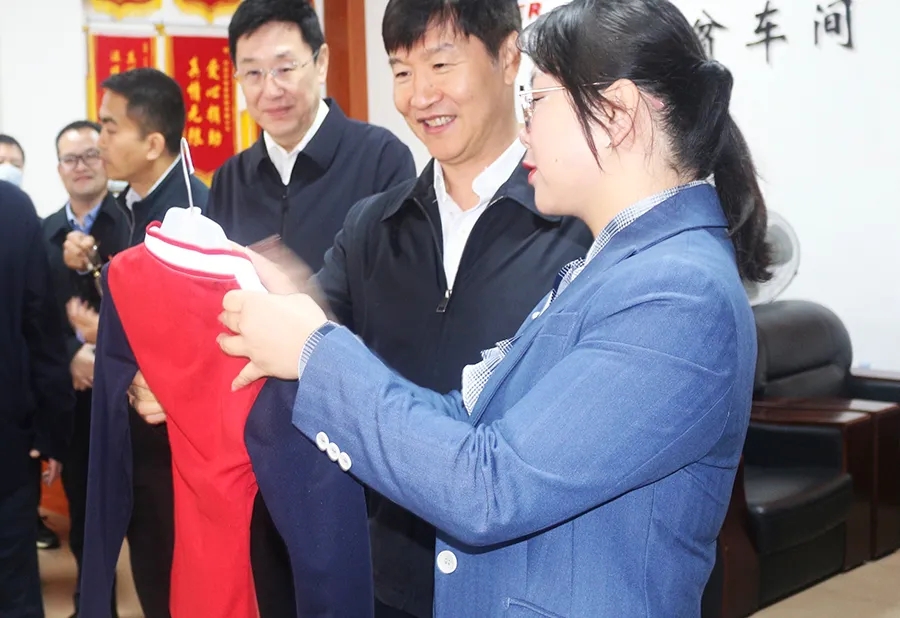 在參觀展示廳的過(guò)程中,市場(chǎng)總監(jiān)曾凱蘭向領(lǐng)導(dǎo)們?cè)敿?xì)介紹了百裕校園服飾特點(diǎn)。環(huán)江是毛南、壯、漢、苗、瑤、水、仫佬族、侗、布依等少數(shù)民族集中地,是全國(guó)惟一的毛南族自治縣,擁有絢爛多彩的少數(shù)民族文化背景,百裕集團(tuán)在服務(wù)當(dāng)?shù)貙W(xué)校學(xué)子的同時(shí),充分保留民族文化特色,將文化元素融入到學(xué)生服飾當(dāng)中,傳承民族文化。對(duì)于此舉,劉小明給予了認(rèn)可與極大的鼓勵(lì)。