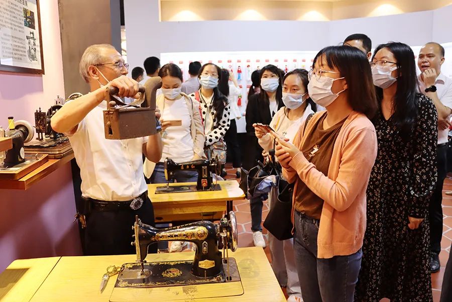 在文化館內,學員們學習學生服飾歷史文化,近距離了解不同時代的服飾生產機器,感受服飾的魅力及人類智慧的文明發(fā)展。