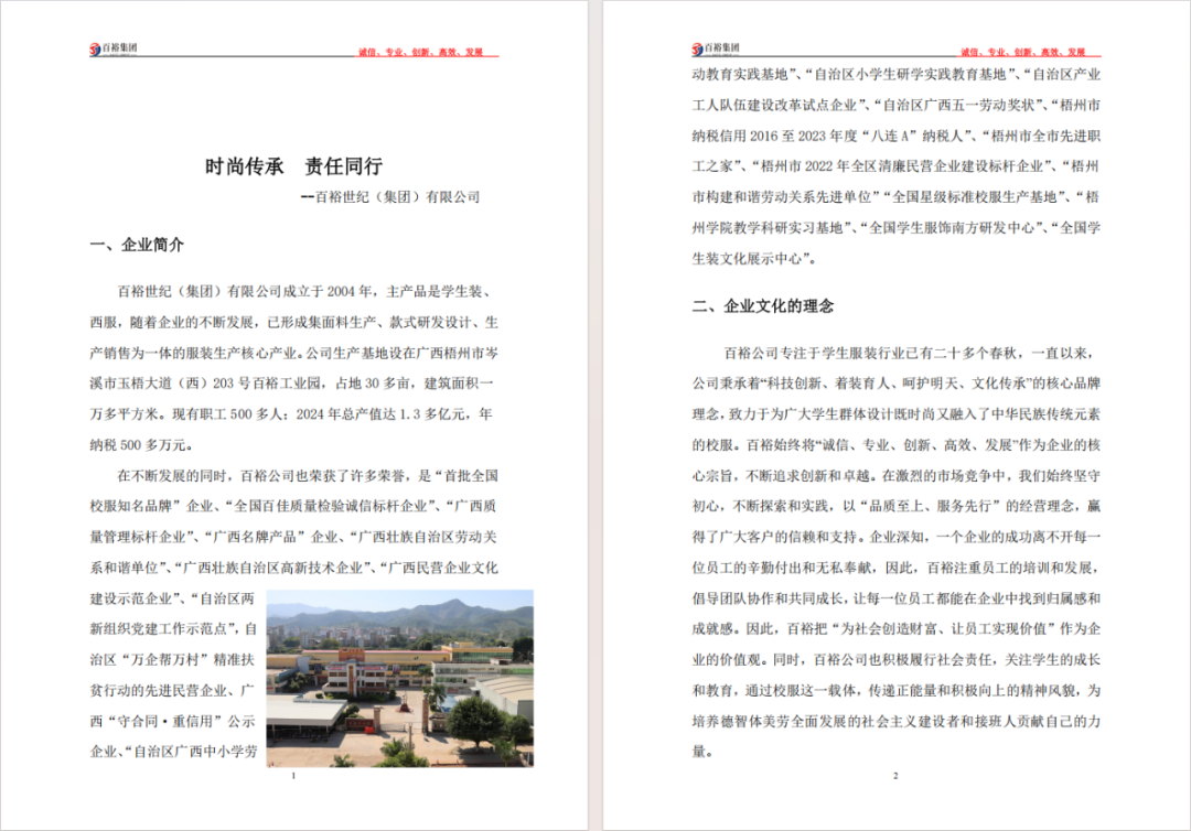 百裕集團自2004年成立以來,始終秉持“誠信、專業(yè)、創(chuàng)新、高效、發(fā)展”的核心宗旨,堅持“為社會創(chuàng)造財富、讓員工實現價值”的企業(yè)價值觀。多年來,集團不僅在學生裝、西服等主營業(yè)務領域持續(xù)深耕,更將履行社會責任融入企業(yè)戰(zhàn)略和日常運營,實現了經濟效益與社會效益的協(xié)同發(fā)展。