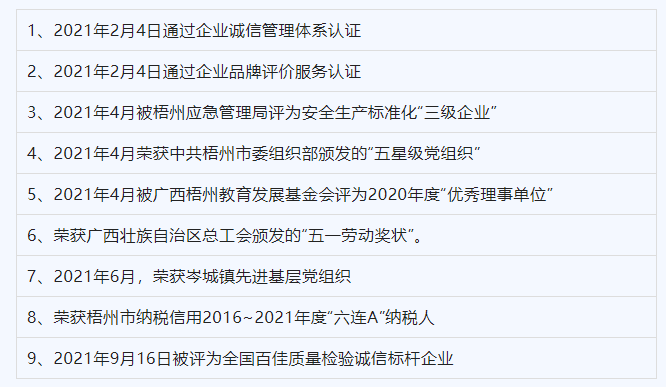 2021年百裕企業(yè)榮獲的部分榮譽(yù)