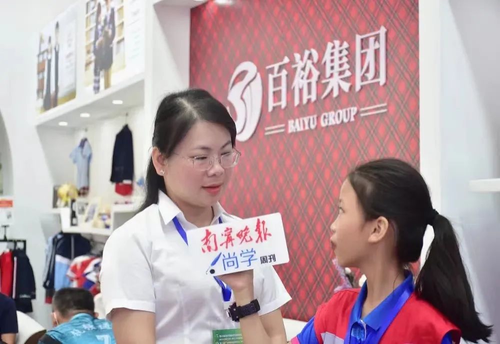 服飾展區(qū)吸引了小記者團的關(guān)注與了解,對服裝的制作、面料、配飾、洗滌護理等知識充滿好奇心并爭相提問,在百裕集團員工現(xiàn)場耐心解說下,小記者們收獲滿滿!
