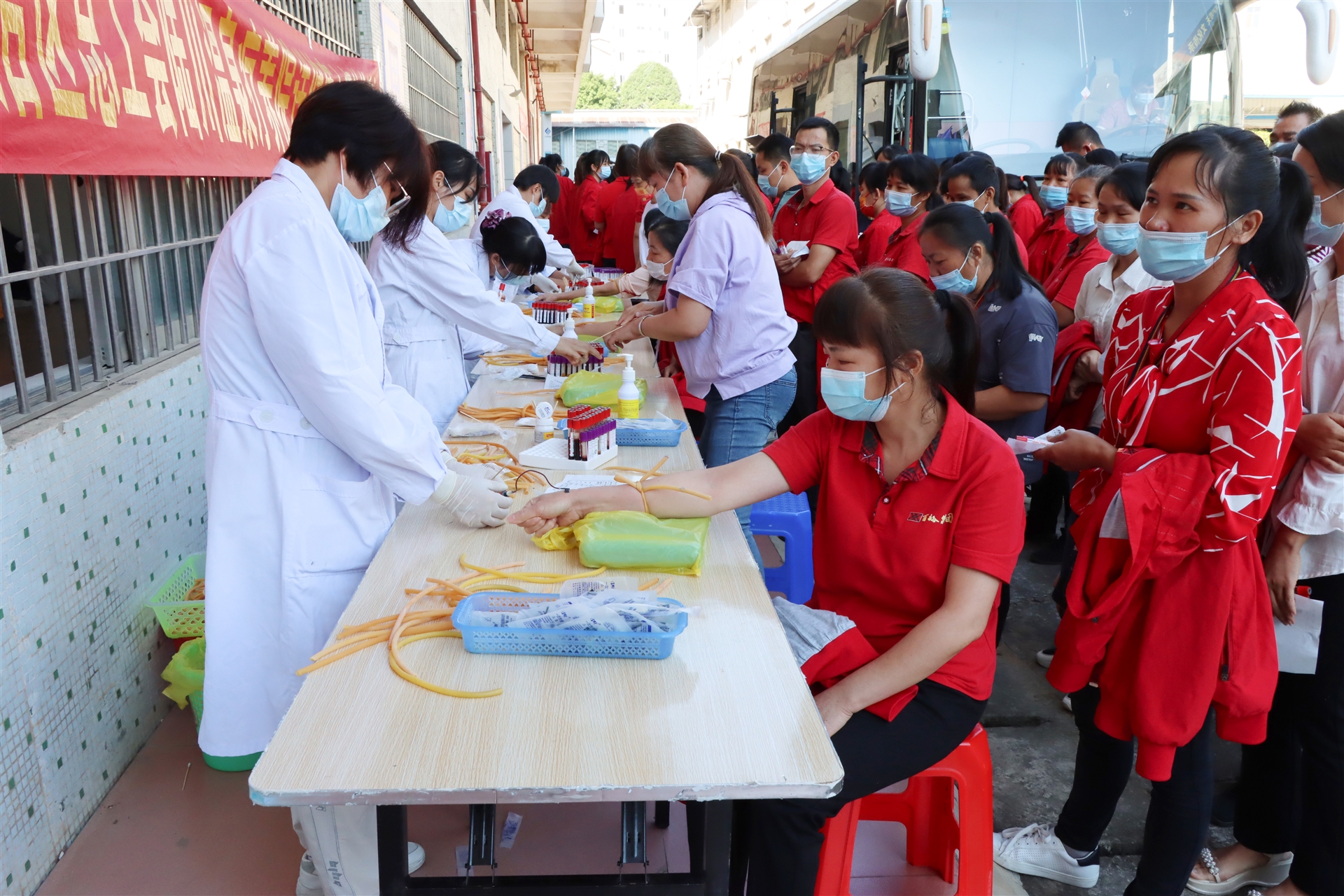 本次送健康體檢服務(wù),由廣西壯族自治區(qū)總工會陸川溫泉療養(yǎng)院的12名醫(yī)護(hù)人員上門開展,10月14日一早,體檢醫(yī)護(hù)車開進(jìn)了百裕工業(yè)園,為百裕200多名一線產(chǎn)業(yè)工人提供:血液化驗、B超、肝/腎功能、心電圖、DR胸部影像、癌癥篩查等12項體檢內(nèi)容。