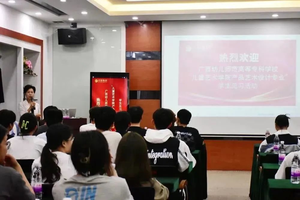 3月21日,廣西幼兒師范高等專科學校“兒童藝術(shù)學院產(chǎn)品藝術(shù)設(shè)計專業(yè)” 2022級59名學生,在老師們的帶領(lǐng)下,來到百裕集團南寧營銷中心開展見習活動。