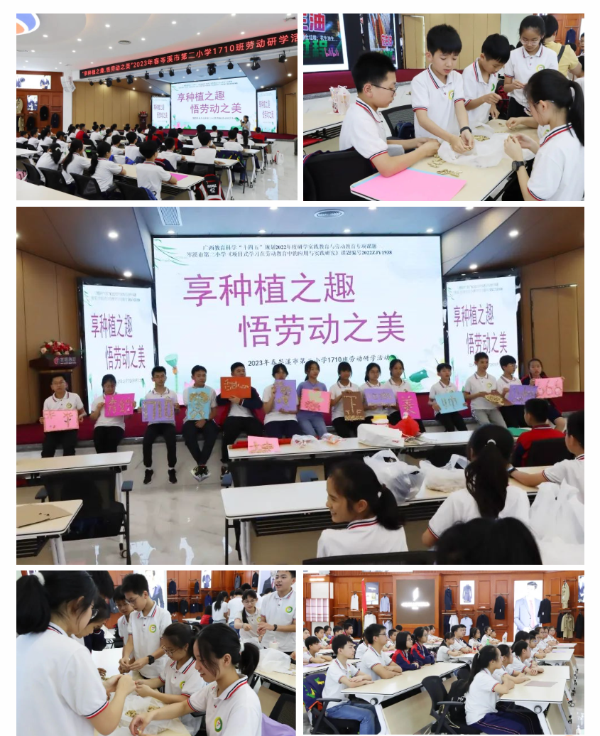 課堂開始,勞動(dòng)教育實(shí)踐基地的工作人員組織學(xué)生們,在多功能教室進(jìn)行了農(nóng)作物與勞作知識(shí)的學(xué)習(xí)。學(xué)習(xí)農(nóng)作物的辨認(rèn)、如何挑選出合適的農(nóng)作物種子,還學(xué)習(xí)了如何種植花生的步驟,課堂上同學(xué)們聽得聚精會(huì)神,積極參與互動(dòng)。在課堂最后,同學(xué)們用剝出來的花生殼做成了自己喜歡的拼圖,在積極響應(yīng)環(huán)保理念之余,又體驗(yàn)到了動(dòng)手的樂趣。