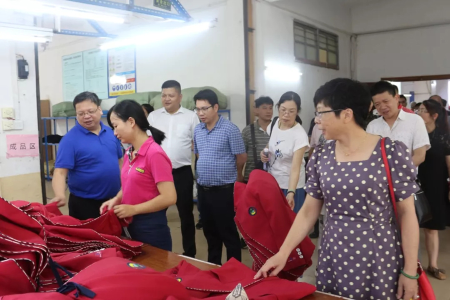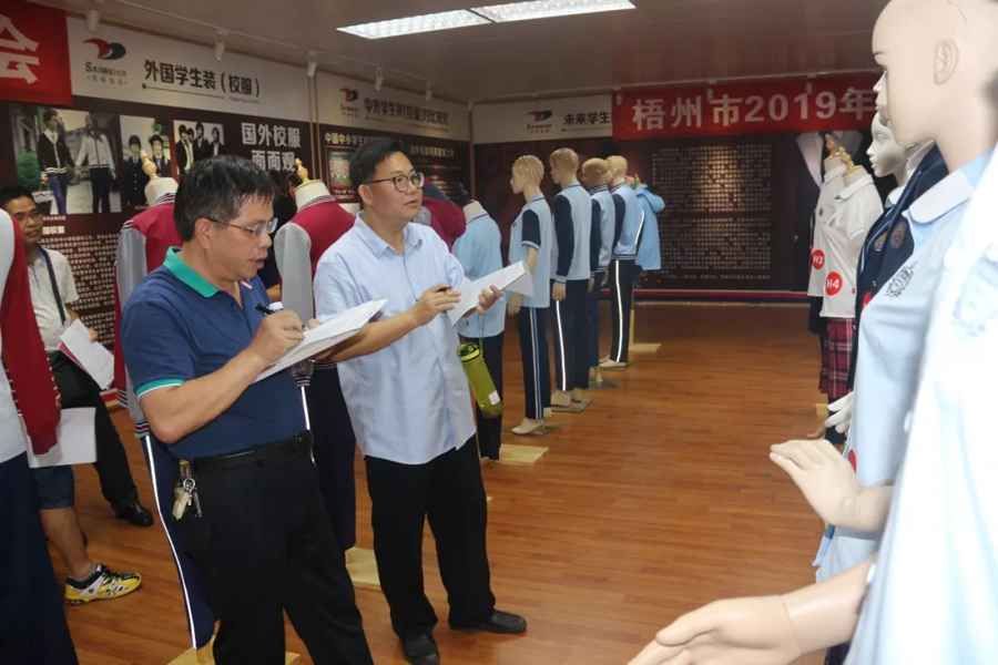 交流會(huì)后,參會(huì)代表們一同參觀了百裕集團(tuán)生產(chǎn)車間,同時(shí)對2019年梧州市中小學(xué)學(xué)生服裝款式進(jìn)行評(píng)議。