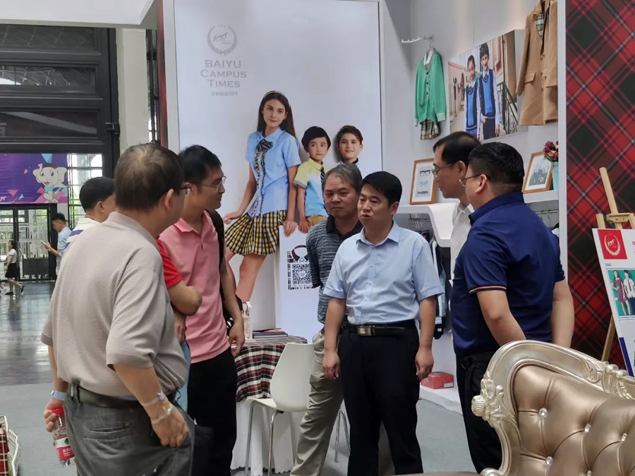 百裕集團(tuán)工作人員向現(xiàn)場來賓講解百裕校園時代當(dāng)季服裝的品牌理念和款式設(shè)計。時尚美觀又不乏個性的校園服飾引起了現(xiàn)場觀眾濃厚的興趣,大家紛紛駐足觀看、詢問交流。期間,工作得到了各級領(lǐng)導(dǎo)的現(xiàn)場指導(dǎo)。