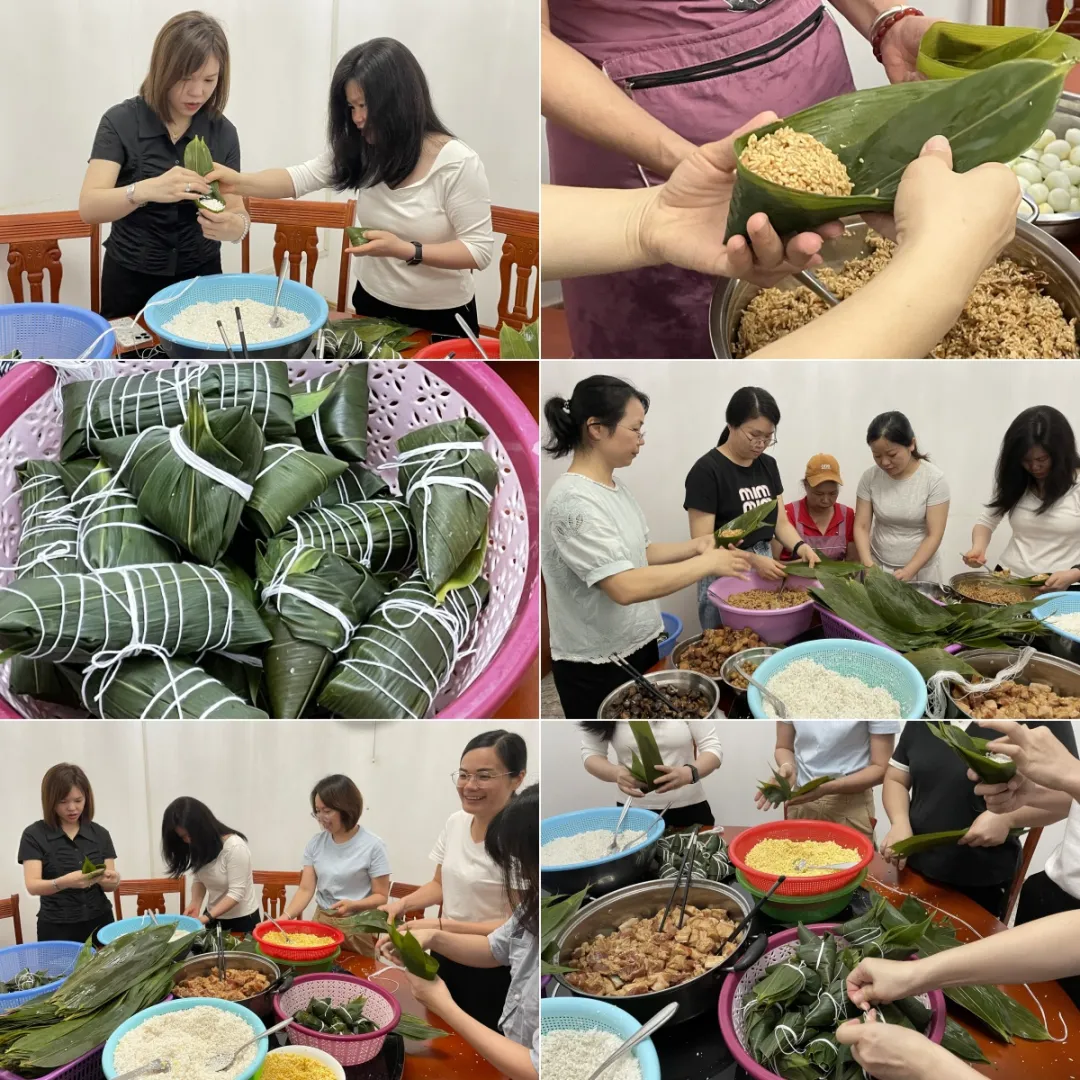 平日忙碌于車間、辦公室的同事們,此刻圍聚一堂。洗凈的粽葉、泡好的糯米、香甜的花生,早已準(zhǔn)備就緒。經(jīng)驗(yàn)豐富的“老師傅”們主動(dòng)擔(dān)起指導(dǎo)重任,手把手傳授包粽技巧;初次嘗試的“新手”們則興致盎然,虛心學(xué)習(xí),折葉、填米、放餡、裹緊、扎繩……每一個(gè)步驟都凝聚著專注與用心。一時(shí)間,歡聲笑語縈繞其間,其樂融融。