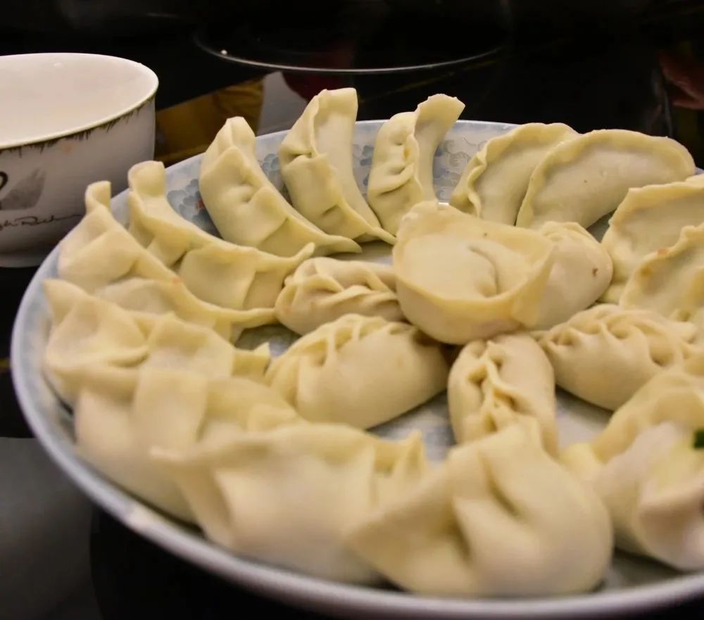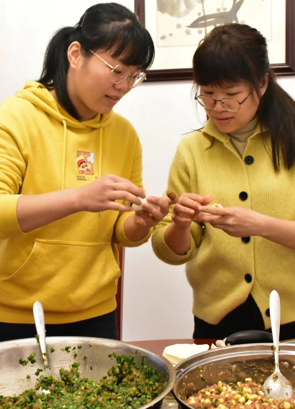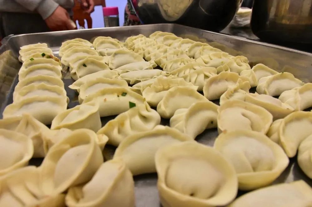新春伊始,大家齊聚餐廳各顯神通,放餡、捏皮,完整連貫。一會兒功夫,一盤盤大小勻稱、緊實(shí)飽滿、形狀美觀的餃子整齊地?cái)[上了臺面:月牙狀、元寶狀、柳葉狀等各式各樣的餃子組成了一桌餃子“全家福”,堪比精美花朵百花齊放。