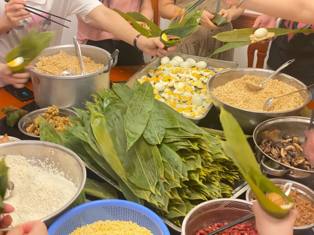 6月21日,百裕集團(tuán)南寧營(yíng)銷(xiāo)中心的同事們?cè)缭缇蛠?lái)到餐廳進(jìn)行準(zhǔn)備工作,各顯神通?;顒?dòng)中大家一起交流包粽子的技巧