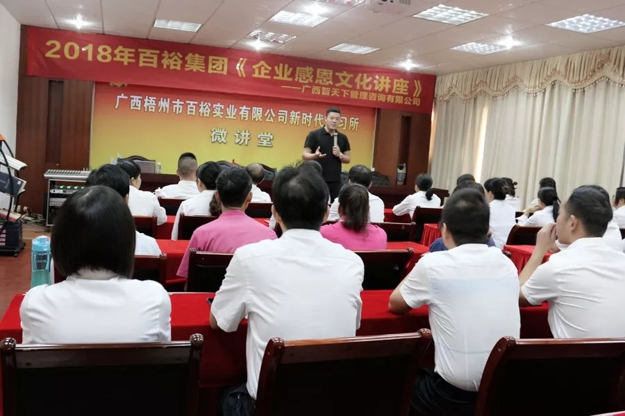 最后公司總經(jīng)理曾晏來發(fā)表感言:在百裕集團這個平臺上,我們在增長著閱歷,豐富著自我,實現(xiàn)著人生的價值;在這個平臺上,我們用激情點燃著理想,用薪酬支配著生活。因此,我們應該感謝企業(yè),感謝企業(yè)培養(yǎng)我們,感謝企業(yè),讓我們成長,感謝企業(yè)給予我們一片展示自我的天地,感恩就要有責任,讓我們立足本質,踐行“誠信、專業(yè)、創(chuàng)新、高效”的公司文化理念,從一點一滴做起,從身邊事情做起,常懷感恩之心,為全力實現(xiàn)公司又好又快和諧發(fā)展發(fā)一份光、散一份熱!感謝導師帶來的精彩教育講座,通過感恩培訓講座,讓我們從活動中體驗感恩,并回歸現(xiàn)實生活,讓大家在不知不覺中受到教育,使其知、情、意、行在情理交融中實現(xiàn)自我完善,最終回報父母、回報社會、回報企業(yè)。